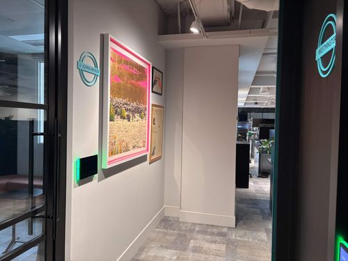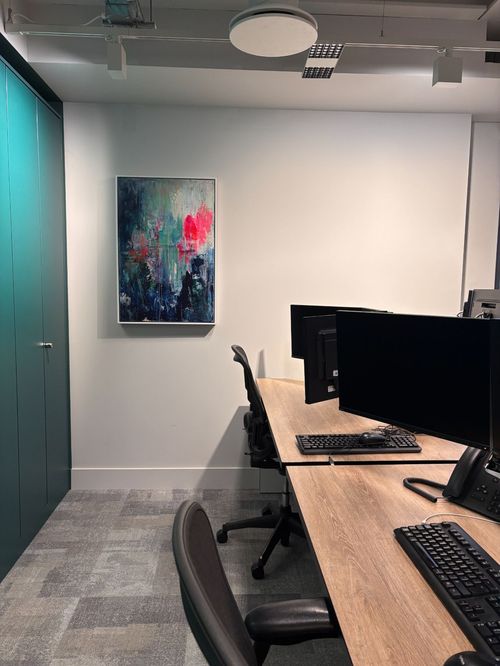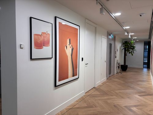 It was important to them that the office feel cool, creative, corporate and combine residential and commercial elements. Over two floors, we rotate nearly 150 artworks every 6 months, to keep the space new and exciting and the energy fresh. With so many spaces used for different types of work, we focussed on using the artwork to zone the different areas. We created min-curations inside the bigger project, to separate spaces that needed to be used for concentrated working, meetings, collaboration, energy boosts and break out spaces.
